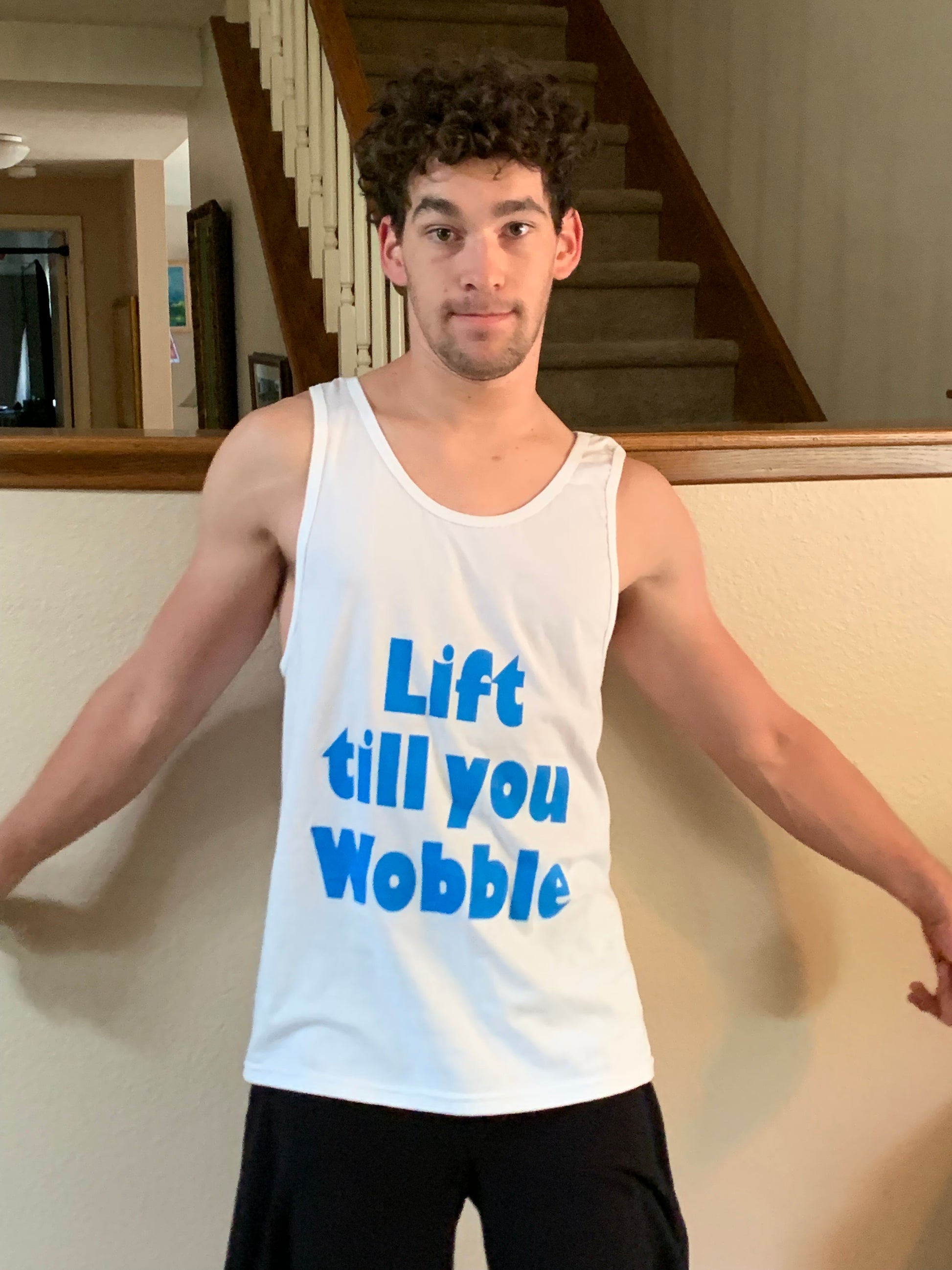 The White Lift till you Wobble Tank combines professional design with motivational messaging to enhance your workout experience. Crafted in crisp white, this tank features bold blue lettering that encourages you to push your limits and embrace every challenge. Ideal for athletes and fitness enthusiasts, it offers both style and inspiration to keep you focused during intense training sessions.